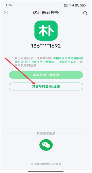 3、在進(jìn)入到登錄頁面中,可以點(diǎn)擊其它號(hào)碼登錄/注冊(cè)按鈕,進(jìn)行操作。