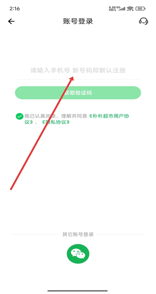 4、在進(jìn)入到賬號(hào)登錄頁面中,填寫新號(hào)碼點(diǎn)擊獲取驗(yàn)證碼后,輸入驗(yàn)證碼即可完成注冊(cè)登錄。