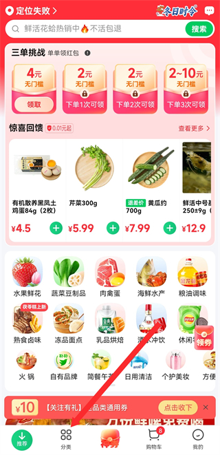 定位為一站式移動(dòng)端30-45分鐘即時(shí)配送購物平臺(tái),品類包含水果、蔬菜、肉禽蛋奶、海鮮水產(chǎn)、糧油調(diào)味、酒水飲料、休閑食品、化妝品、日用品等。