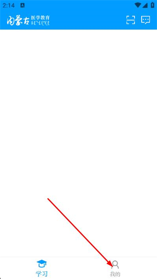 1、打開內(nèi)蒙醫(yī)教app,點擊底部導(dǎo)航欄的我的選項。