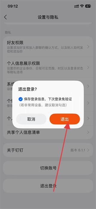 4、在彈出的提示框中,點(diǎn)擊退出即可退出登錄。