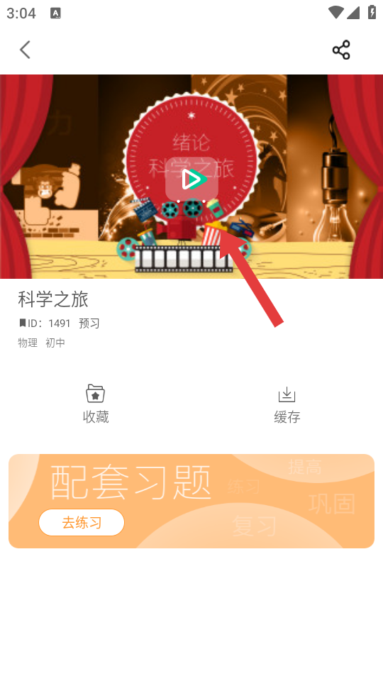 4、在課程詳情頁面點(diǎn)擊播放按鈕開始學(xué)習(xí),還可點(diǎn)擊去練習(xí)做配套習(xí)題。