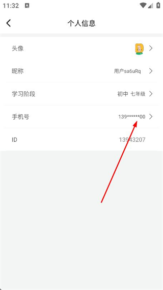 3、在個人信息頁面中,找到并點(diǎn)擊下方手機(jī)號選項(xiàng)。