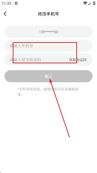 4、輸入手機(jī)號和驗(yàn)證碼,點(diǎn)擊確認(rèn)即可修改手機(jī)號。
