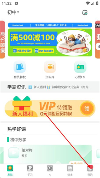 1、打開物理大師app,點(diǎn)擊底部導(dǎo)航欄的我的選項(xiàng)。