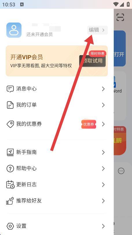 2、在彈出的側(cè)邊欄中,點擊頭像右側(cè)的編輯選項。