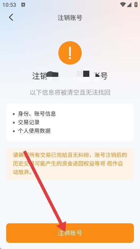 4、點擊底部的注銷賬號按鈕,即可完成賬號注銷操作。
