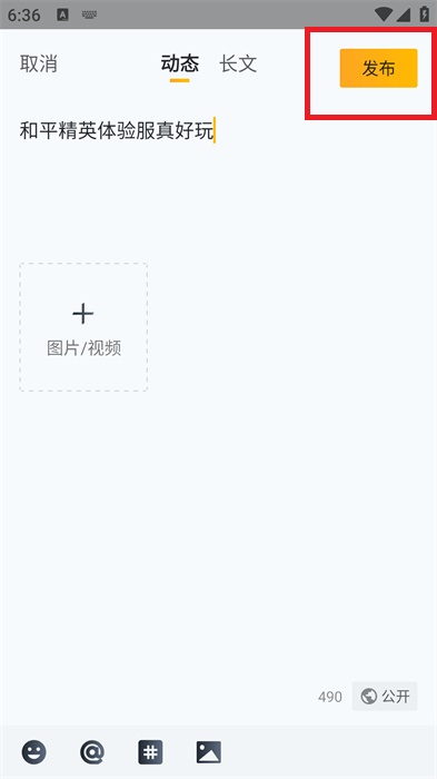 4、添加好所有的動態(tài)內(nèi)容之后,用戶就可以點(diǎn)擊右上角的【發(fā)布】發(fā)布動態(tài)在社區(qū)之中。