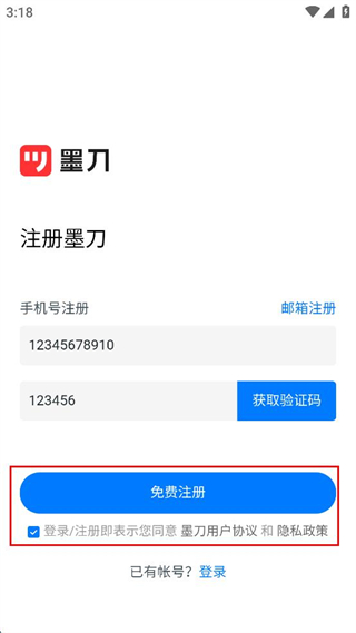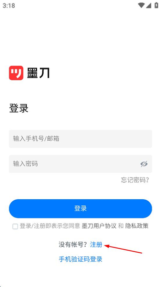 1、打開墨刀應用,在登錄頁面點擊注冊選項,進入注冊墨刀的操作界面。