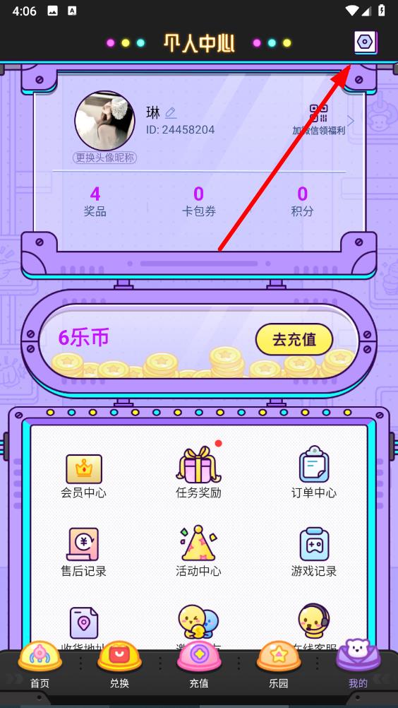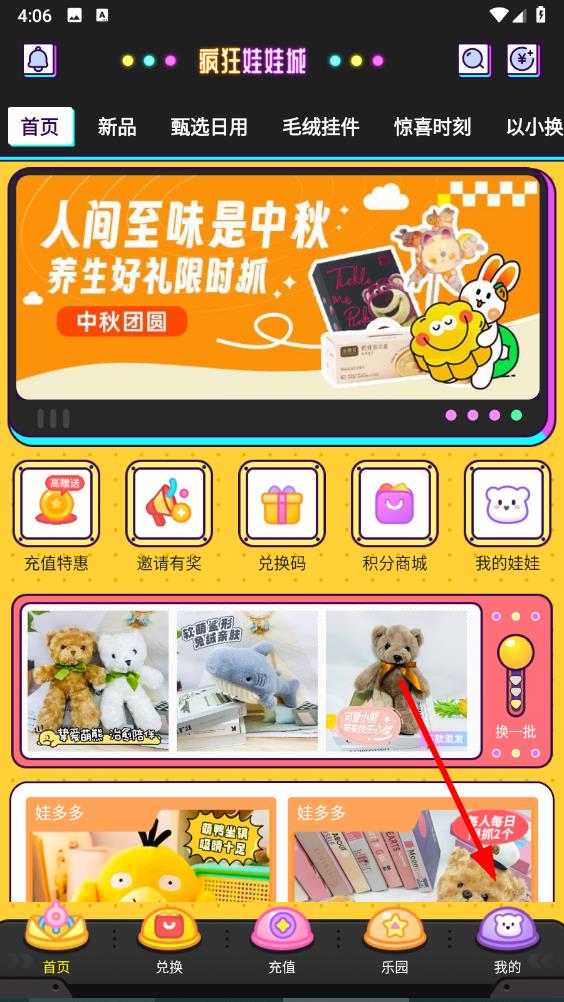 1、打開瘋狂娃娃城app,進入主界面,點擊底部導(dǎo)航欄最右側(cè)的我的,進入個人中心。
