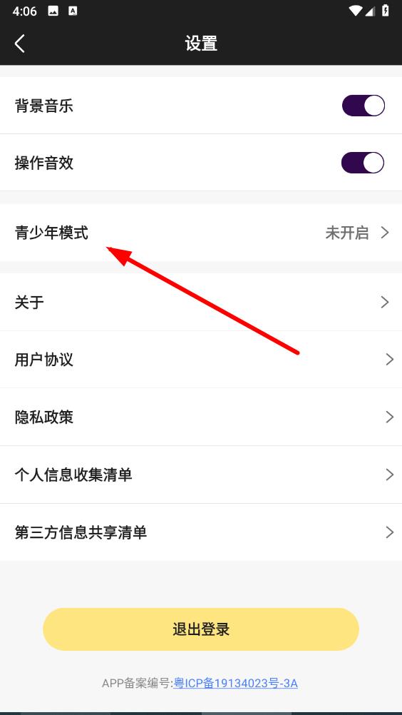 3、在設(shè)置頁面里,找到青少年模式選項,點擊進入青少年模式設(shè)置界面。