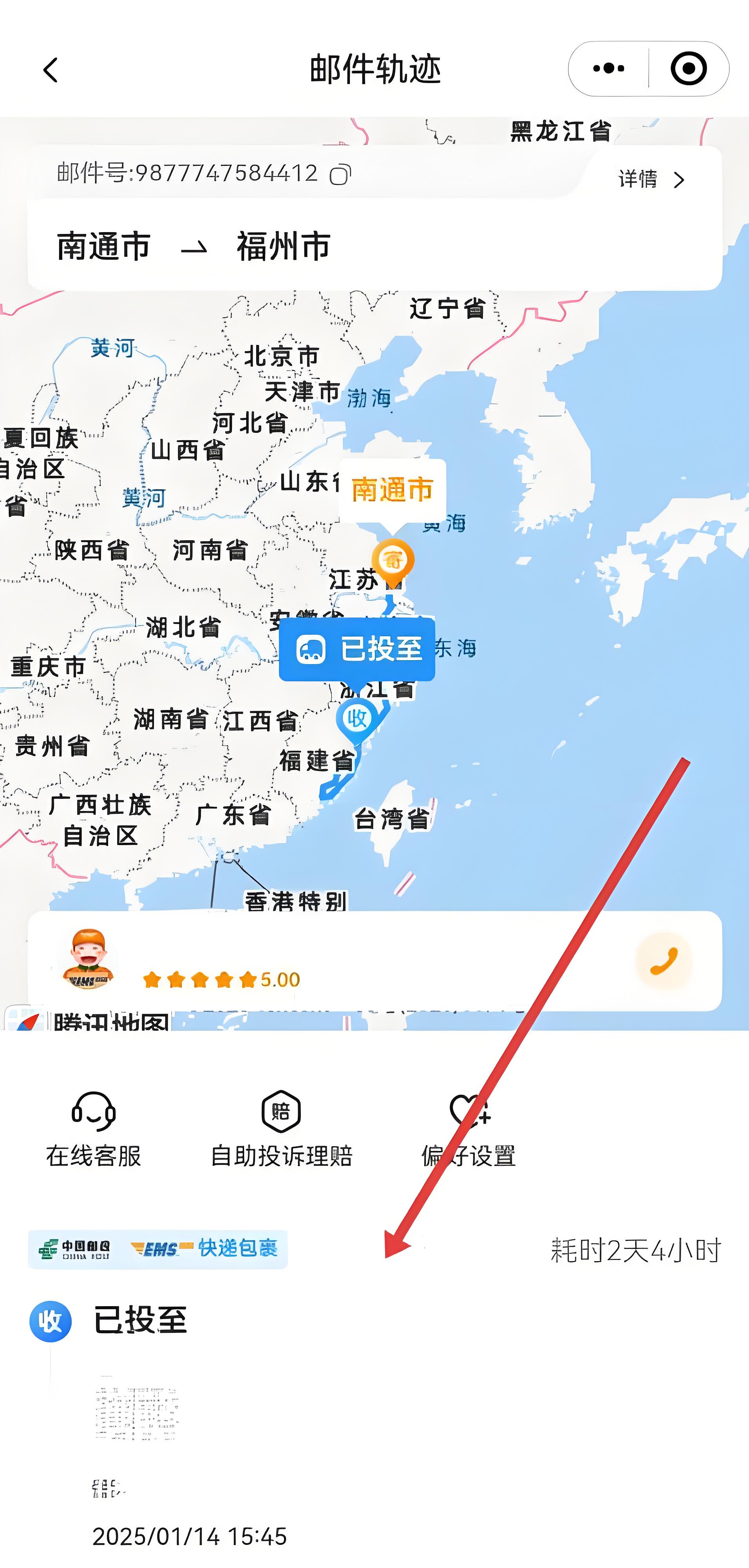 3、在快遞詳情的頁面,我們可以查看郵件最新的軌跡,及各節(jié)點(diǎn)的物流狀態(tài)。