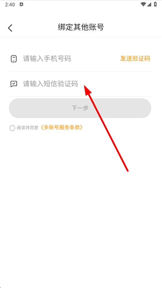 4、在綁定其他賬號(hào)頁面,輸入手機(jī)號(hào)碼并獲取驗(yàn)證碼,輸入驗(yàn)證碼后勾選同意條款,點(diǎn)擊下一步完成綁定。