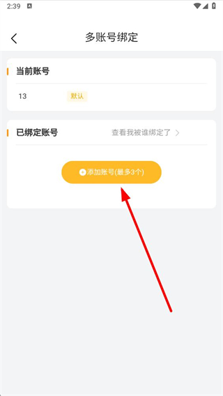3、進(jìn)入多賬號(hào)綁定頁面后,點(diǎn)擊黃色的添加賬號(hào)按鈕。