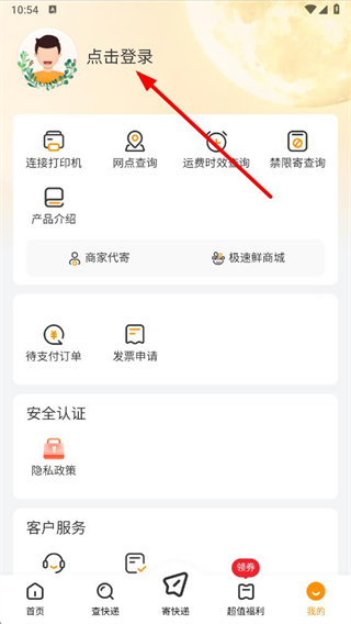 1、打開郵政EMS后,點(diǎn)擊底部導(dǎo)航欄我的選項(xiàng),進(jìn)入我的界面。