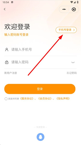 3、在登錄頁面里,選擇右上角的手機(jī)號(hào)登錄選項(xiàng),切換至手機(jī)快捷登錄界面。
