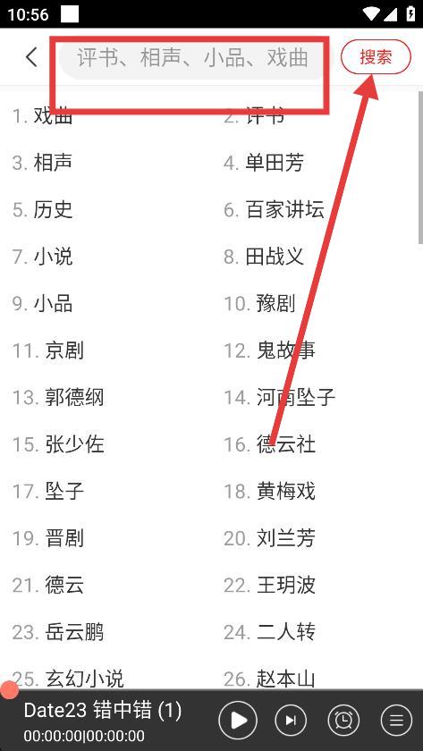 2、在搜索欄中輸入你想聽的相聲關(guān)鍵詞,點擊搜索按鈕。