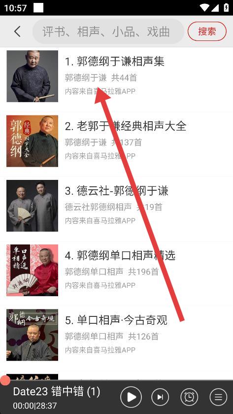 3、在搜索結(jié)果中,找到你想聽的相聲專輯并點擊進(jìn)入。