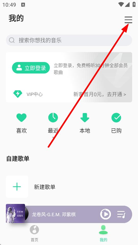 1、打開魅族音樂應(yīng)用,在我的頁面中,點(diǎn)擊右上角的更多圖標(biāo)。