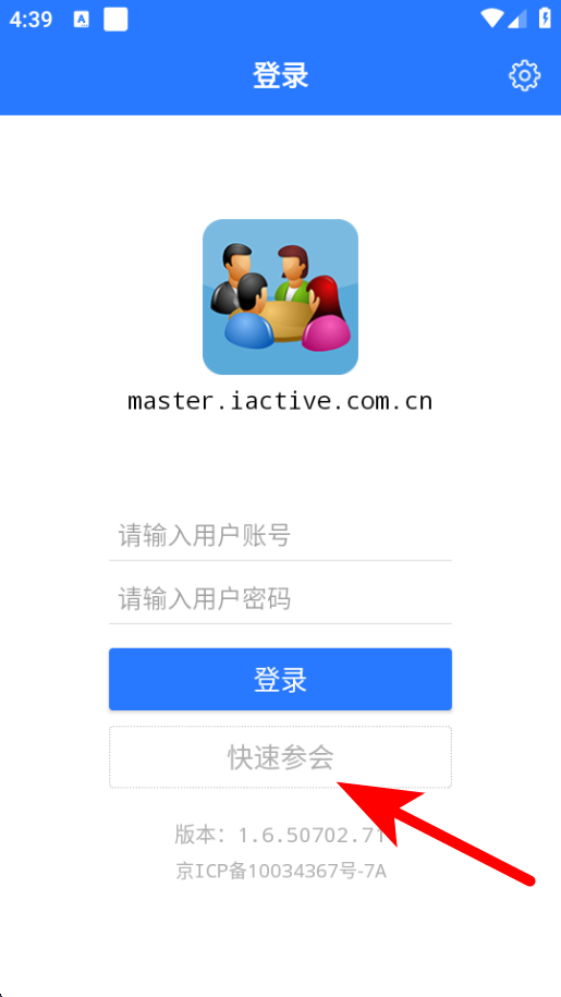 2、在登錄的頁(yè)面,我們需要點(diǎn)擊快速參會(huì)的這個(gè)選項(xiàng)。