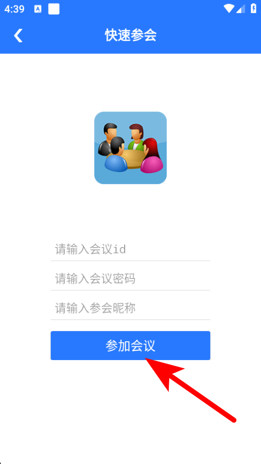 3、進(jìn)入快速參會(huì)頁(yè)面,輸入會(huì)議ID等,點(diǎn)擊參加會(huì)議完成快速參會(huì)。