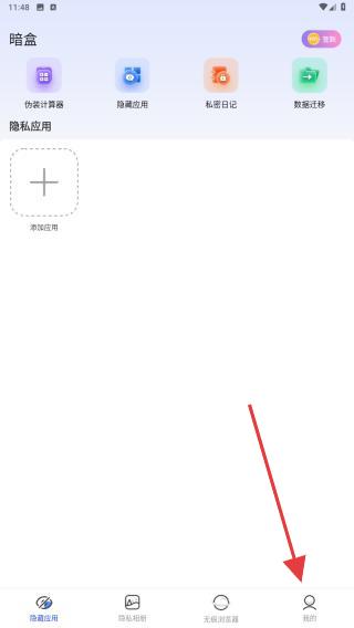 1、打開暗盒APP,在首頁內(nèi)點擊右下角我的圖標(biāo)。