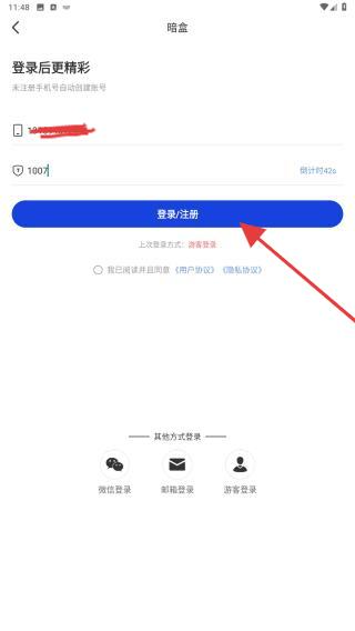 4、將收到的驗證碼輸入進(jìn)去后,再點擊登錄/注冊的按鈕即可。