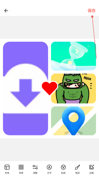 4、拼圖效果調(diào)整滿意后,點擊界面右上角的保存按鈕,將拼好的圖片保存至手機本地相冊。