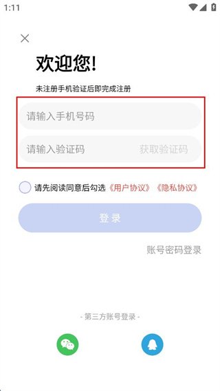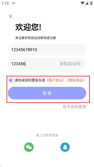 4、勾選用戶協(xié)議和隱私協(xié)議,點擊登錄。