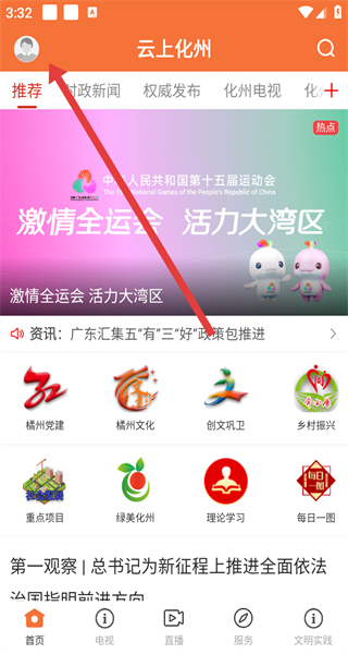 1、打開云上化州APP,點(diǎn)擊左上角的個人中心圖標(biāo),進(jìn)入個人中心界面。