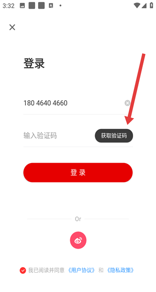 3、在登錄界面,輸入手機(jī)號碼后點(diǎn)擊獲取驗(yàn)證碼,進(jìn)行獲取驗(yàn)證碼。