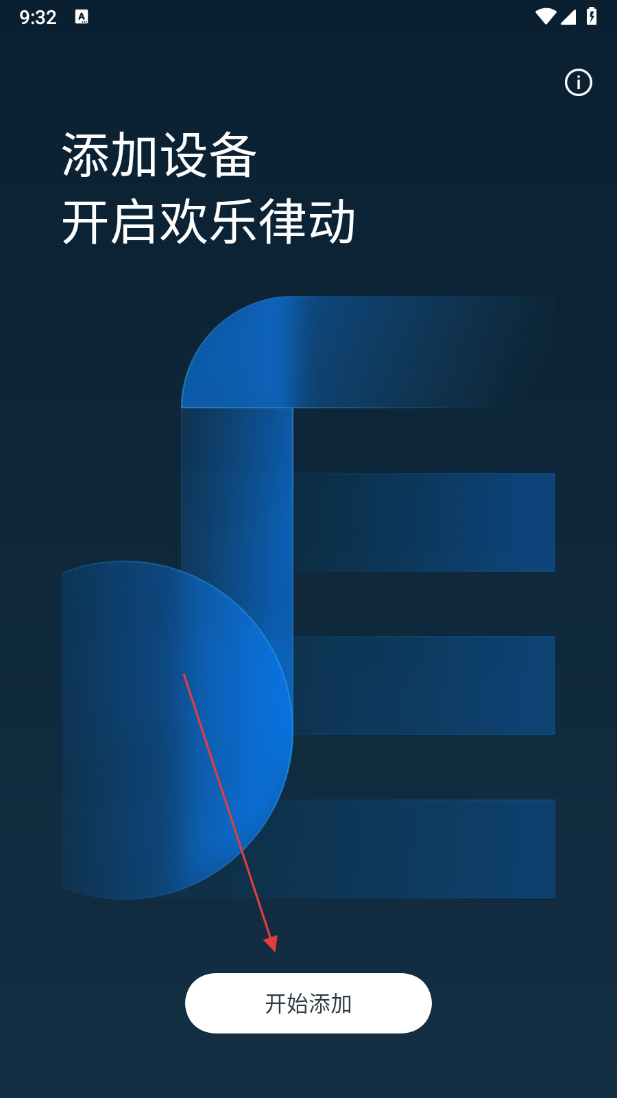 1、打開歡律APP,在添加設備頁面點擊開始添加按鈕,進入掃描界面。