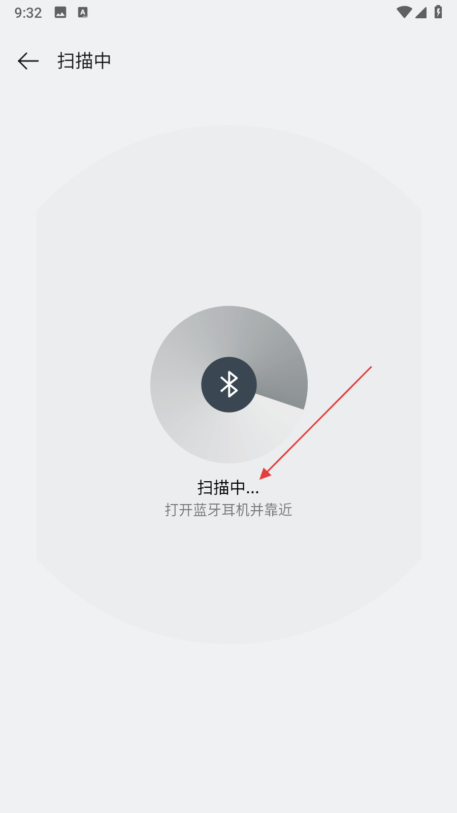 2、進入掃描中頁面后,保持藍牙耳機處于可配對狀態(tài)并靠近手機,等待APP掃描設備。