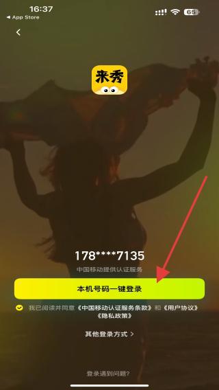 2、點(diǎn)擊后彈出登錄模式,點(diǎn)擊本機(jī)號碼一鍵登錄的按鈕。