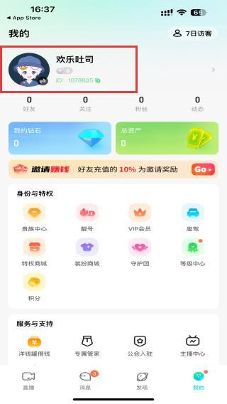 4、登錄成功后,會自動跳轉(zhuǎn)至個(gè)人頁面內(nèi),在此頁面內(nèi)可查看用戶昵稱與頭像。
