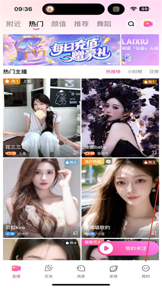 1、打開來秀APP進(jìn)入到首頁內(nèi),點(diǎn)擊右下角我的功能圖標(biāo)。