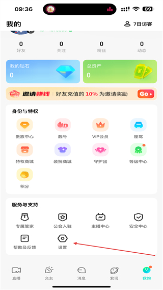 2、進(jìn)入我的界面內(nèi),向下滑動找到并點(diǎn)擊設(shè)置的功能。