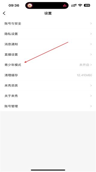 3、進(jìn)入設(shè)置的頁面內(nèi),點(diǎn)擊青少年模式的功能按鈕。