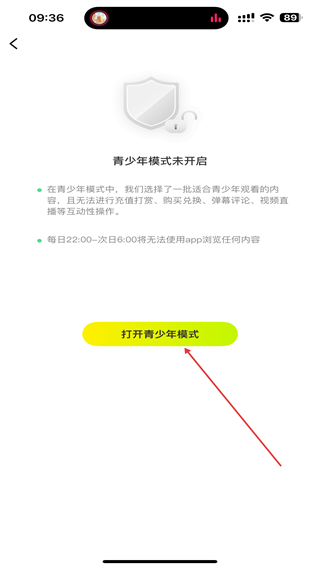 4、在青少年模式的界面內(nèi),熟知后再點(diǎn)擊打開青少年模式。