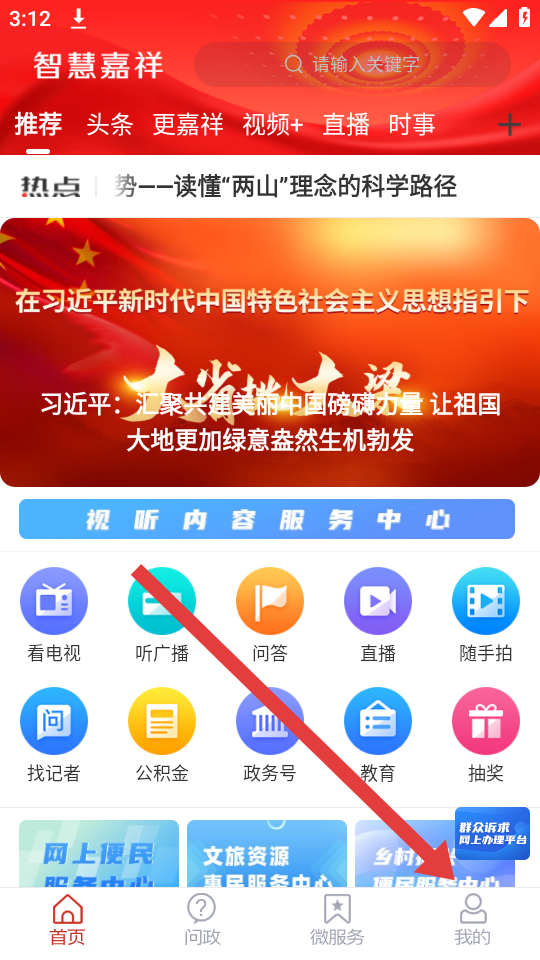 1、打開智慧嘉祥App,需要點(diǎn)擊首頁(yè)底部導(dǎo)航欄最右側(cè)的我的按鈕,然后進(jìn)入個(gè)人中心的頁(yè)面。