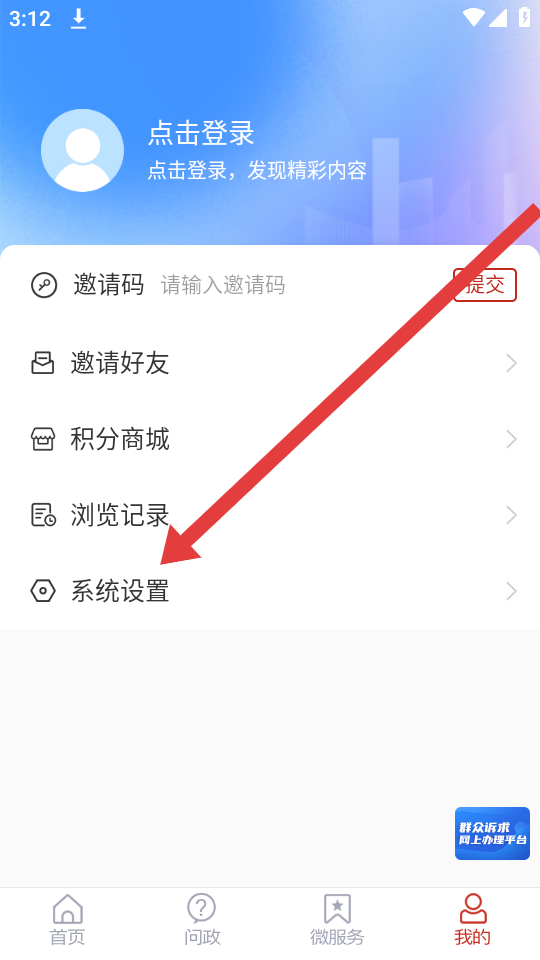 2、進(jìn)入我的頁(yè)面中,我們需要找到并點(diǎn)擊最后一欄系統(tǒng)設(shè)置的選項(xiàng),進(jìn)入系統(tǒng)設(shè)置的界面。