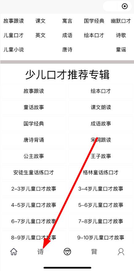 1、打開口才訓(xùn)練app,點(diǎn)擊底部詩(shī)按鈕進(jìn)入詩(shī)詞相關(guān)板塊。