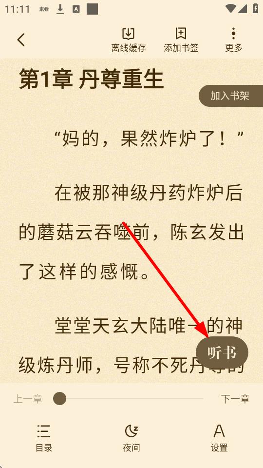 3、進入小說閱讀頁面后,點擊頁面中的聽書按鈕。