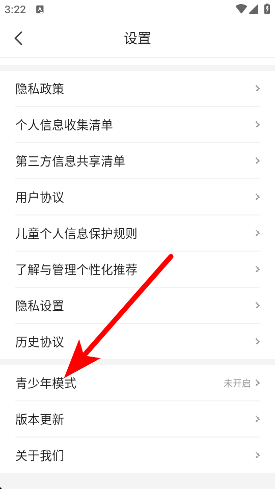 3、在設(shè)置頁面,點擊青少年模式選項,進入青少年模式說明界面。