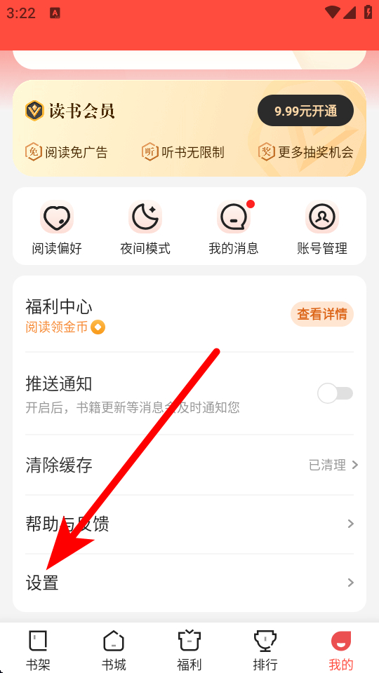 1、在閱友小說書城頁面,點擊右下角我的選項,進入個人頁面。