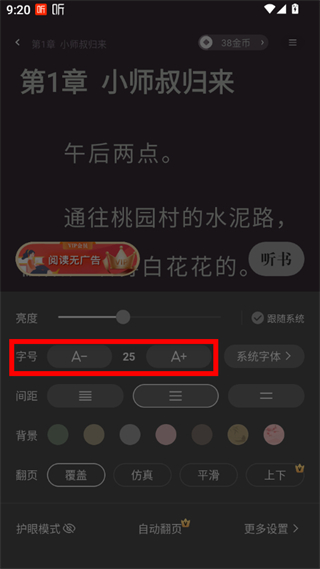 3、在設(shè)置菜單中,找到字號調(diào)整區(qū)域,可通過A-或A+按鈕調(diào)整字體大小。