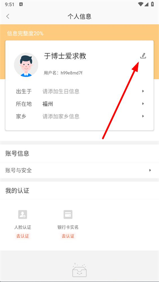 3、在個人信息頁面點擊昵稱右側(cè)的編輯圖標(biāo),進(jìn)入編輯個人資料頁面。