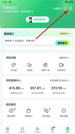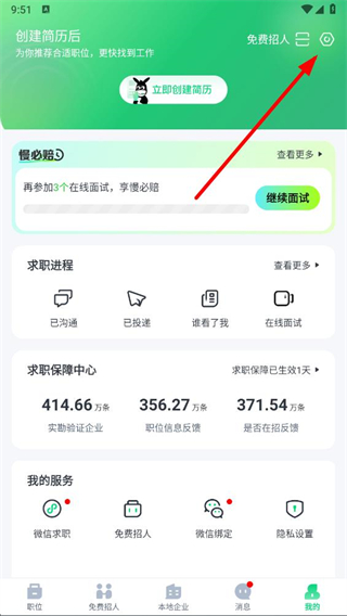 1、打開趕集招聘APP,在我的頁面點擊右上角設(shè)置圖標(biāo)。