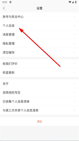 2、在設(shè)置頁面點擊個人信息選項,進(jìn)入個人信息頁面。