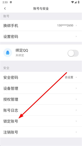 4、進(jìn)入賬號與安全頁面后,點擊鎖定賬號選項。
